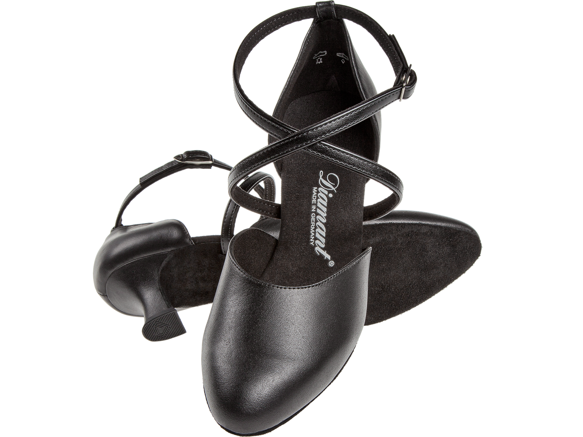 Mod. 048 Diamant dames ballroom dansschoenen, handgemaakt in Duitsland, in een klassiek design met een ronde hals.